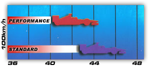 A vehicle, installed with Performance rotor disc, has greater stopping power during sudden stops. At the speed of 100 km/h, the car enabled to stop at 2.2 meters, on average, shorter than cars fitted with standard rotors.